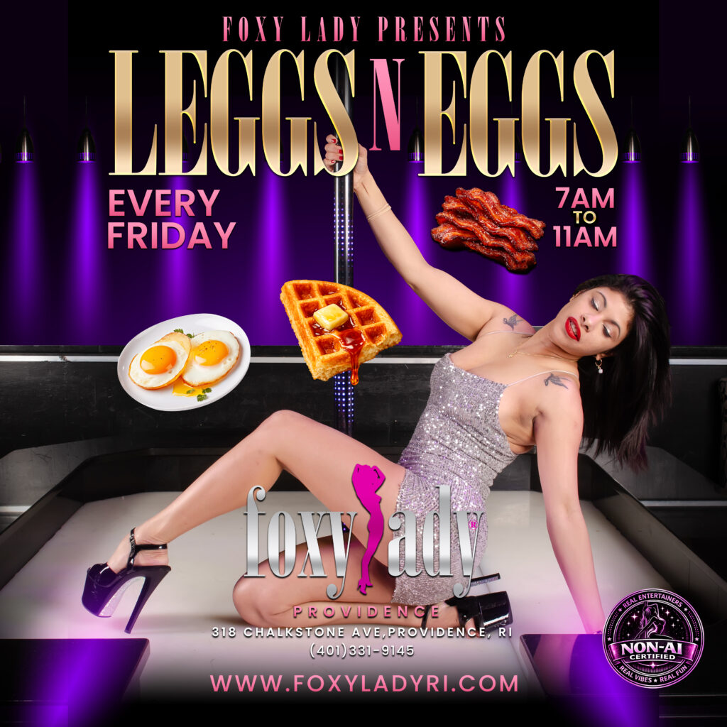 Kickstart your morning with the legendary Legs ‘n’ Eggs Breakfast Buffet, a Providence tradition that has been delighting guests for over 30 years. Every Friday morning, we serve up a delicious spread of breakfast favorites, cooked to perfection and paired with the most incredible women in entertainment you’ll find in New England. Indulge in great food, from our incredible eggs and savory bacon to fresh fruit and more, all while enjoying the company of the Foxy Lady’s most stunning entertainers.